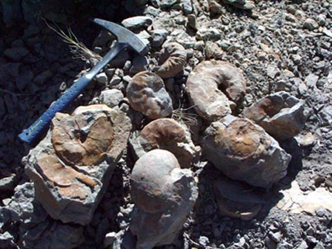 Santonian age cephalopods occur in the Emery Sandstone Member of the Mancos Shale. The Garley Canyon Beds and the Lower Emery Beds south from Huntington are where the fossils pictured below were found. These rocks were deposited in the Sevier Foreland Basin.